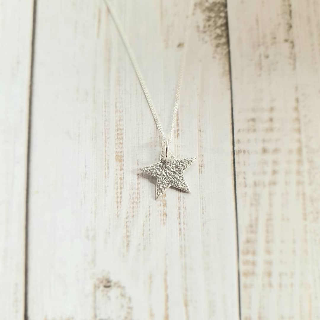 This beautiful textured star charm has been handcrafted in pure silver and comes on a sterling silver fine chain. This star necklace makes the perfect Christmassy gift for someone special! To make it even more unique and special, you can have it upgraded to include a tiny pure silver snowflake too! Each one comes with the Christmas Star poem card, which you can have personalised with your own message; please include your message at checkout.