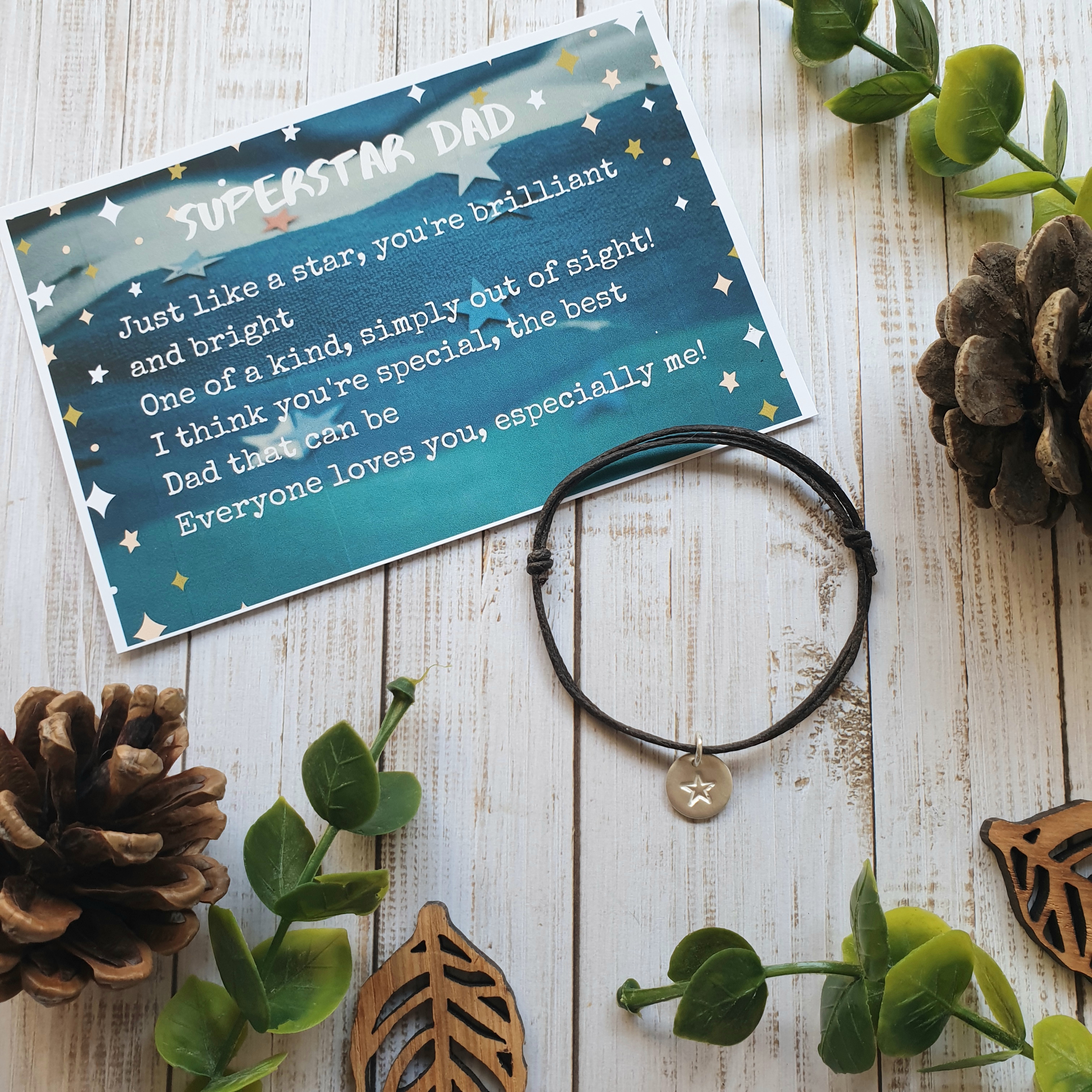 These Superstar Dad bracelets make the perfect thoughtful gift for a Dad’s Birthday, Father’s Day or even just to let Dad know he is loved! Handcrafted in pure silver and featuring a star stamped into a circular charm, these will certainly make Dad feel special. Each one comes with the ‘Superstar Dad’ poem card which can be personalised on the back with your own additional message. They are also sent directly to the recipient to make it easier for you. Please make sure you add any additional message in the comments section at checkout.
